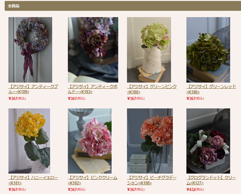 例)人気の秋色アジサイアンティークブルーが¥367など。